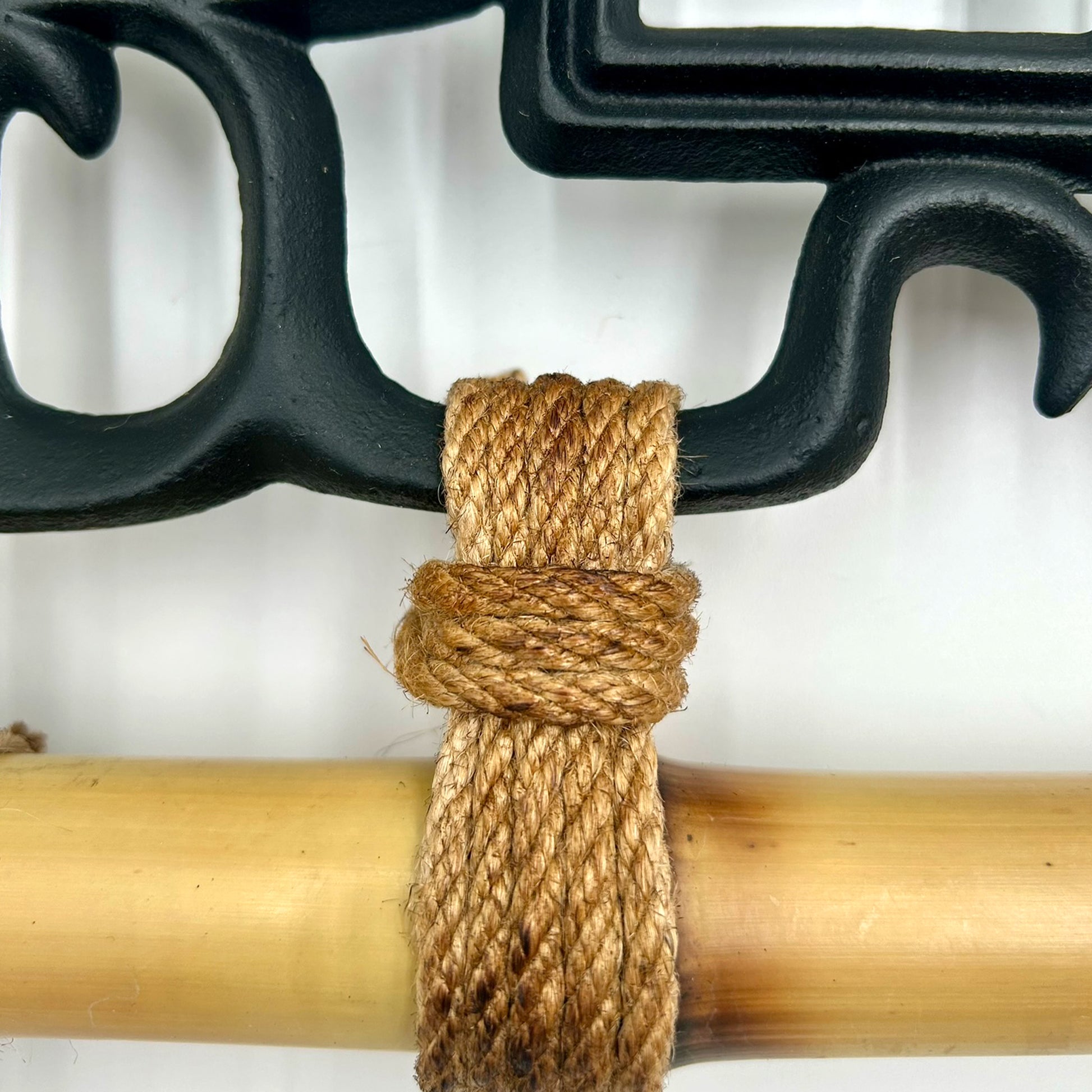 The Iron Dragon Tile is a reproduction of similar tiles found in tiki bars most popular in the 1950's and 1960's. These tiles are perfect for pairing with traditional tiki jade tiles to create screens or backdrops. The tile is solid cast iron, just like the originals. Hand tied into a bamboo frame and made in my New York workshop.